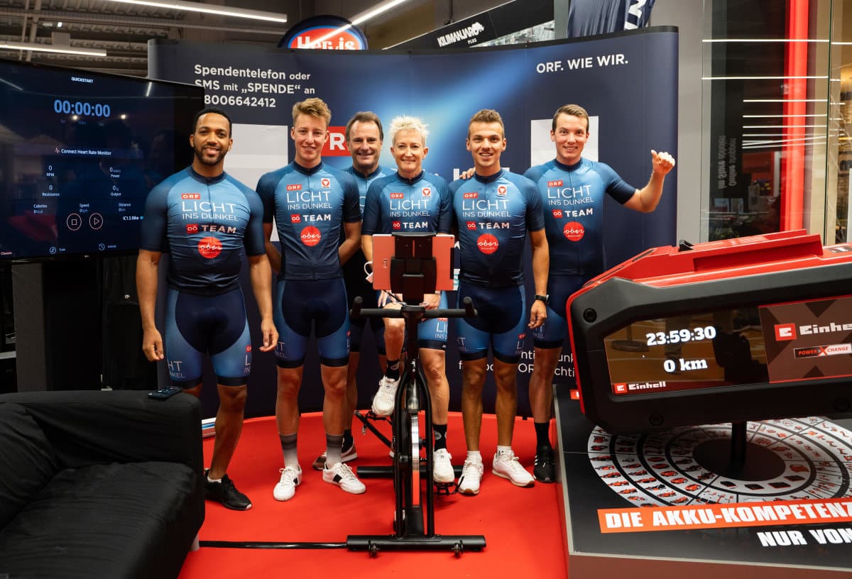 Teamkapitän und Moderator Hans Knauß, der „stolz den Hut vor dem Team zieht“, bedankte sich bei seinen Kolleginnen und Kollegen – der ehem. Skirennläuferin und Sängerin Lizz Görgl, der Autorennfahrerin Corinna Kamper, dem Sänger und Arzt Marco Angelini und den Heeressportlern Maximilian Foidl (Mountainbiker) und Martin Strempfl (Sportschütze) – die sich auch während der Nacht enorm für das gemeinsame Ergebnis einsetzten, um mit jedem Kilometer Spenden für LICHT INS DUNKEL zu sammeln.