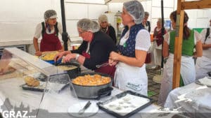 Wie man an den Fotos beim Aufsteirern Sonntag sehen kann, das Wetter hat letztlich gehalten. Es gab am Nachmittag keinen Regen mehr. Zahlreiche Stände luden zum Informieren und Gustieren ein. Für das leibliche Wohl ist ausreichend gesorgt. Rotweine, Weißweine, Sturm und Fruchtsäfte steirischer Herkunft gegen den Durst. Für den Hunger gabt es Schwammerlsoße mit Knödel, Kernöleierspeis auf Schwarzbrot, Käsespätzle, Brennsterz, Hirschgulasch, Aufstrichbrote und vieles mehr. Auch auf das Süße wird nicht vergessen, Strauben, gebackene Apfelringe und Almraunkerl aus der Obersteiermark lassen warten.