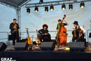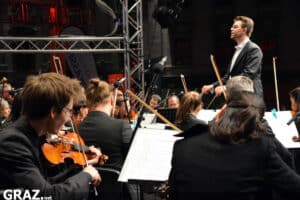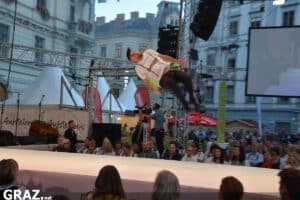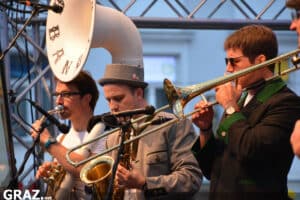 Am Samstag war wieder Crossover Musik angesagt. Unter dem Motto „VolXmusik on Air“ spielten an drei Bühnen in der Innenstadt wieder verschiedene Künstler. Das Highlight waren wieder die Grazer Philharmoniker, erstmals unter der Leitung von Marcus Merkel nachdem Chef-Dirigent Dirk Kaftan nach Bonn gewechselt war, übernahm der junge Dirigent und machte einen großartigen Job. Erstmals trat neben Solisten der Oper Graz auch der Kinderchor, die Singschul‘ der Oper Graz auf. Als special-guests konnten an diesem Abend die Ausseer Hardbradler aus ihrer Schaffenspause geholt werden.