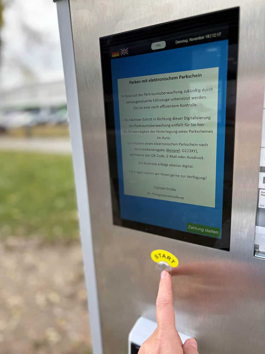 Ab 18. November zu Mittag testet das Parkgebührenreferat im Straßenamt am Europaplatz/Hauptbahnhof den „Elektronischen Parkschein“. Statt eines Zettels hinter der Windschutzscheibe reicht künftig die Eingabe des Kfz-Kennzeichens am Automaten – der Parkschein wird digital erstellt und kontrolliert.