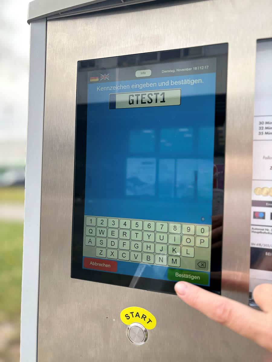 Am Parkscheinautomaten geben Autofahrer:innen ihr Kennzeichen direkt am Touchscreen ein. Das System legt daraufhin einen gültigen, digitalen Parkschein an. Ein Ausdruck fürs Armaturenbrett ist nicht mehr nötig.