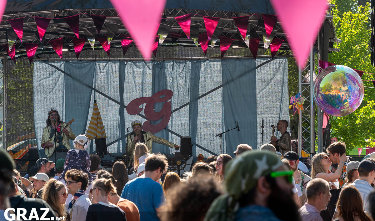 Unter dem Motto „Die Kreuzfahrt ins Glück“ setzte der Nachmittag auf die typische Mischung aus Musik, Familienprogramm und inklusivem Zugang. Schon früh stand mit dem Inklusiven Zirkus Kunterbunt aus Kainbach ein Programmpunkt für Kinder und Familien im Mittelpunkt. Daneben war auch die Familieninsel wieder ein fixer Treffpunkt im Park – mit Basteln, Schminken, Spielen und kleinen Mitmachstationen.
