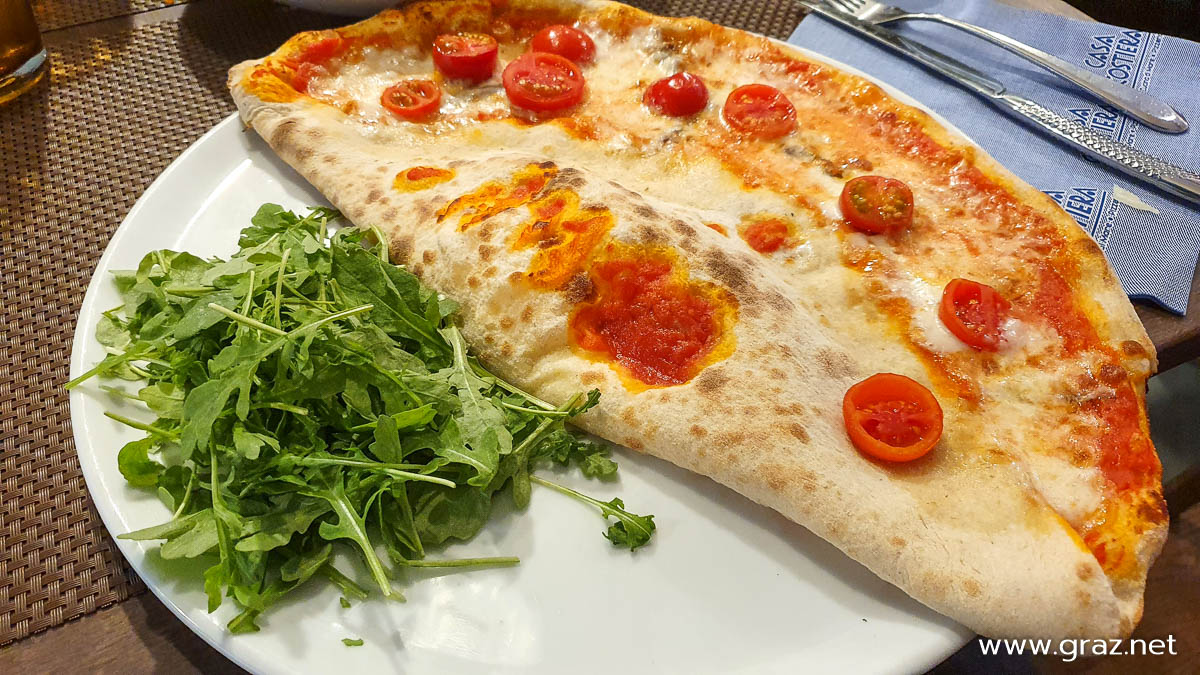 Ein super-freundliches „Bon giorno“ beim Eintreten des Lokals, ein Lächeln beim Aufnehmen der Getränke und Speisen – sehr angenehm ist uns das Service aufgefallen. Wir sind wirklich willkommen gewesen und haben und sehr wohl gefühlt. Die Auswahl an Pizze macht es nicht leicht, eine Wahl zu treffen – die speziellen Pizzavarianten und speziellen Calzina-Variationen und kreativen Beläge haben uns überrascht. Geschmacklich alles gut, kein Krümel ist übriggeblieben. Italienisch auch der Kaffee, in Graz habe ich selten so guten Espresso getrunken. In der Karaffe wurde das eisgekühlte Wasser dazu gereicht, genauso wie es uns gefällt.
