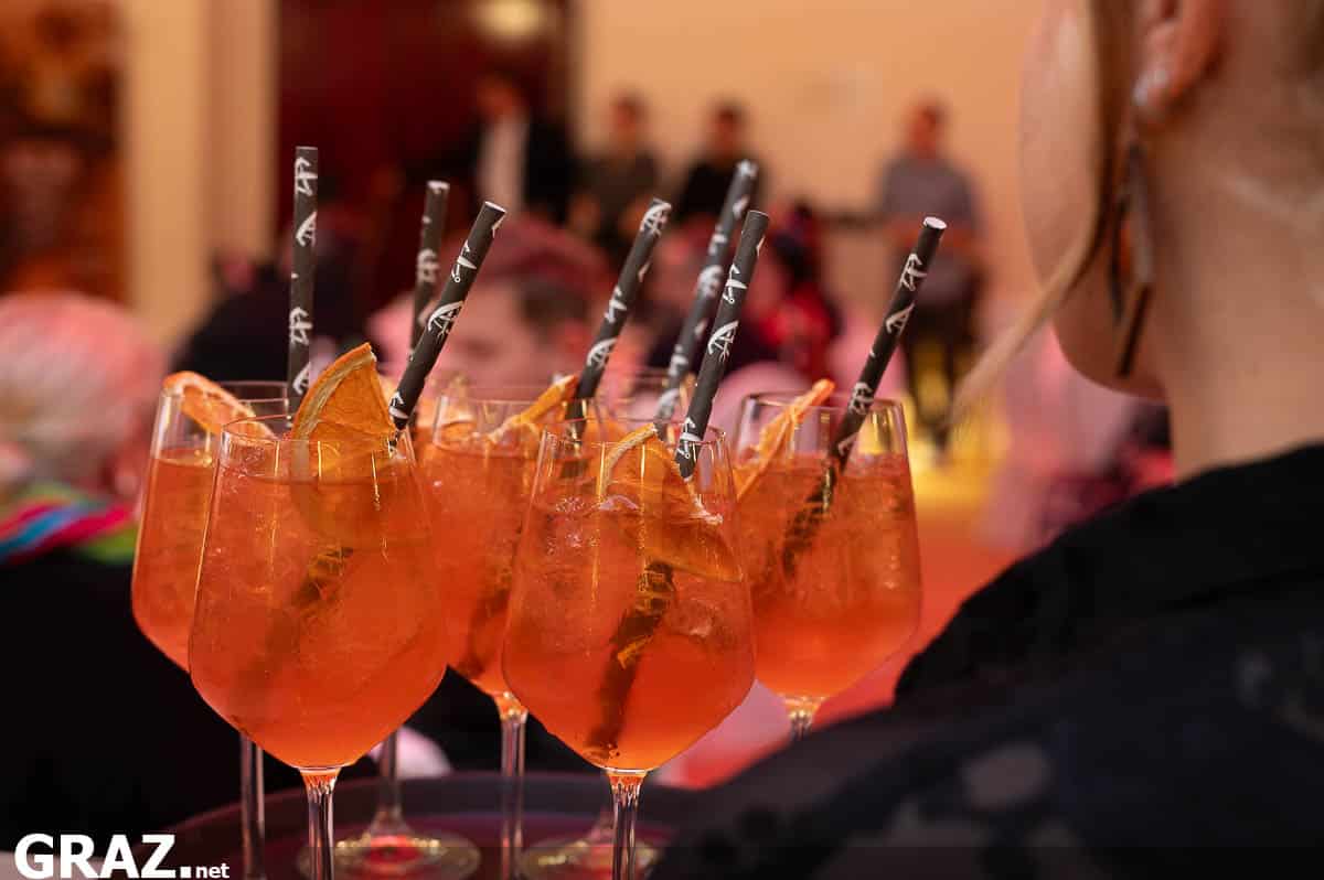 Auch kulinarisch wird die Opernredoute auf ganzer Linie überzeugen, denn die besten Gastronomenteams der Region und der GenussHauptstadt Graz stehen bereit, um das Publikum mit ihren Köstlichkeiten zu verwöhnen. Beim Prolog gab es zur Einstimmung bereits zahlreiche Spezialitäten sowie den neuen Signature Drink „La Dolce Sprizz“ (Prosecco Bosco del Merlo oder Champagner Perrier-Jouët, Ramazzotti Aperitivo Arancia, ORGANICS by Red Bull Black Orange, Eis, Orangenzeste) zu verkosten.