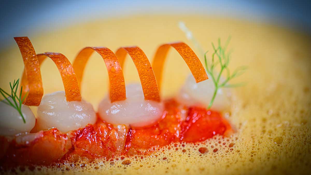 Serviert werden ausschließlich Gerichte aus dem regulären Abendmenü. Zum Start stehen Fischkreationen im Mittelpunkt, darunter etwa Carabinero mit Gänseleber, Brandade und Pinienkernen, der Erfrischungsklassiker „Sisis Koks“ oder Rotbarbe mit Austern sowie Osietra- und Saiblingskaviar. Den Abschluss bildet das Dessert „Prinzessin auf der Erbse“.