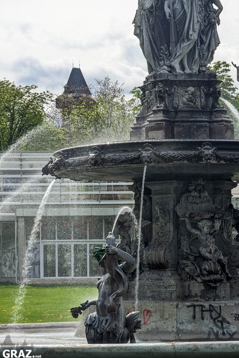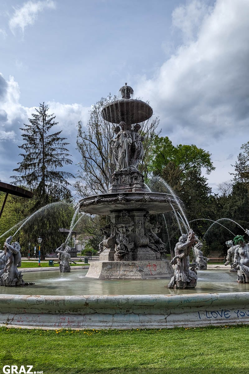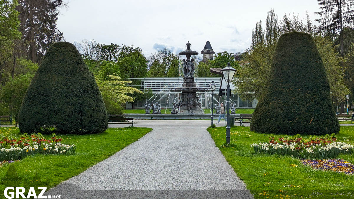 Das Zentrum des Parks bildet übrigens der 1874 errichtete Stadtparkbrunnen, der davor ein Ausstellungsstück bei der ein Jahr zuvor stattfindenden Weltausstellung in Wien war. Die Brunnenteilen, Skulpturen und sonstigen Dekorationen wurden mit fünf Zugwaggons von Wien nach Graz transportiert und werden nun im Stadtpark Graz würdig präsentiert.