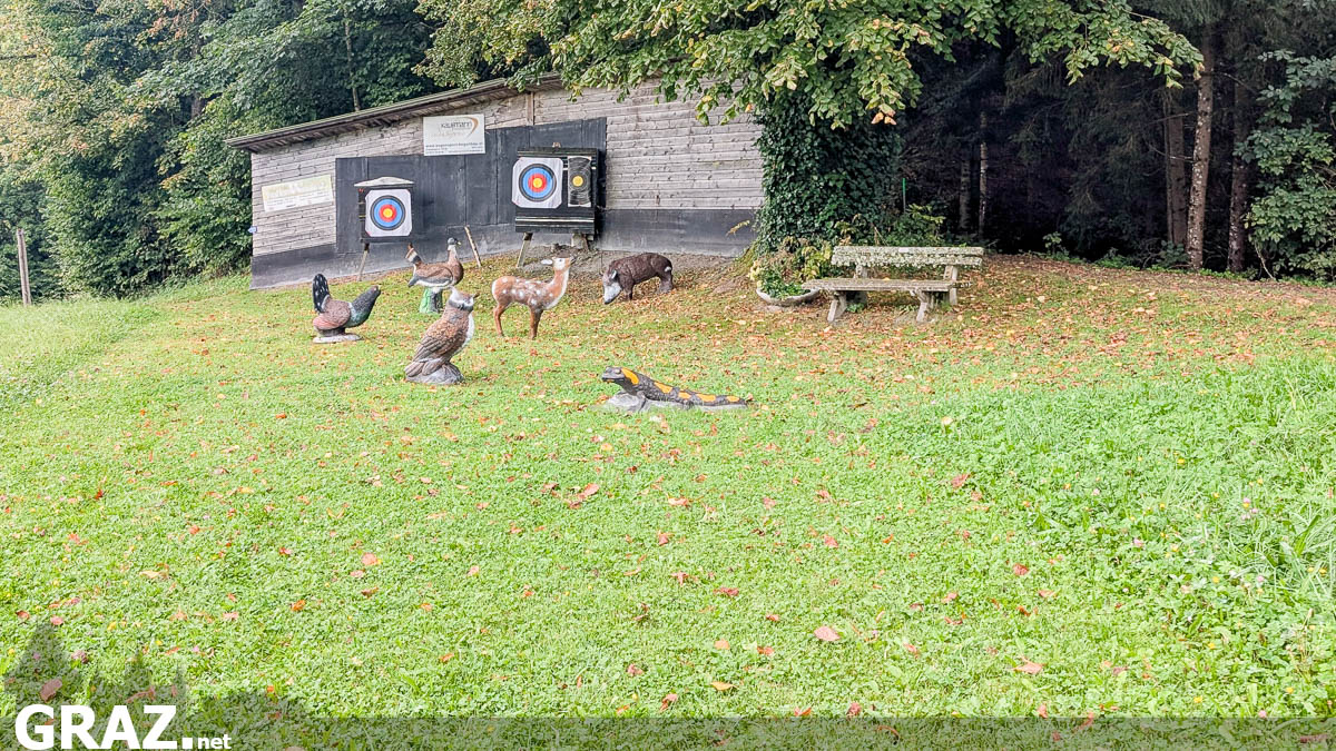 Nur wenige Kilometer außerhalb der Stadtgrenzen findet man den Parcours der Styrian Archers in Judendorf. Parken kann man gegenüber des Geschäfts „Blatt & Blüte“ in der Grazer Straße 88, 8111 Judendorf-Straßengel, ausschließlich auf den freien Schotterparkplätzen. Bezahlt wird am Ticketautomaten, die Bezahlung ist dabei ausschließlich bargeldlos möglich.