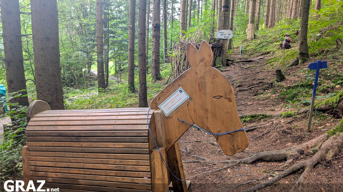 In Mariatrost, etwa zwei Kilometer von der Basilika entfernt, befindet sich der Bogenparcours direkt am gleichnamigen Obsthof Fausters. Rund um den Hof gibt es ausreichend Parkplätze, wenige Schritte entfernt startet auch schon der Parcours mit der Kassa für die freiwillige Spende und Zielscheiben zum Einschießen. Der Einschussbereich ist klein gehalten, es gibt aber zusätzlich die Möglichkeit über den Teich auf eine Zielscheibe bzw. Tiere in verschiedenen Distanzen zu schießen. Hunde an der Leine sind erlaubt.
