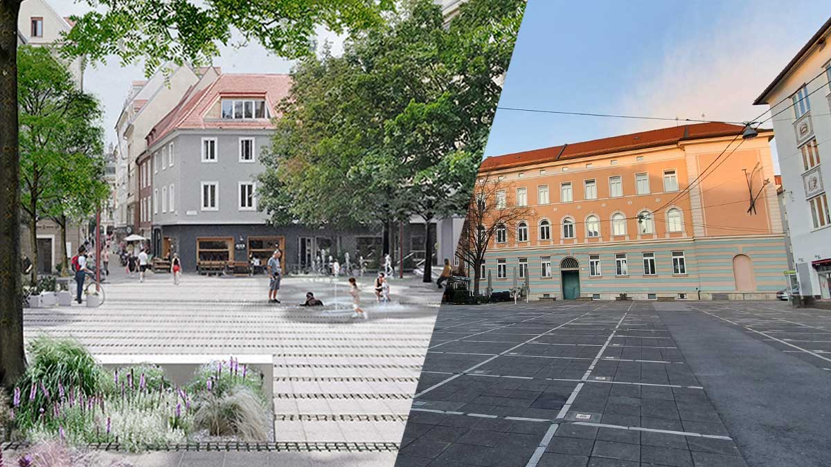 Vorher-Nachher | Visualisierung links: Wolfgang Timmer, Julia Fröhlich, Martin Konrad | Foto rechts: graz.net