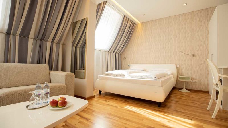 Das Hotel bietet neben 61 individuell gestalteten Zimmern und Apartments (mit Küche) hoteleigene, videogesicherte Parkplätze und 3 Seminarräume für Veranstaltungen bis zu 50 Personen. Besonderes Highlight sind die beiden Terrassen, die zum Abschalten einladen – mit Blick zum Hotel Rosengarten und über die Dächer von Graz.